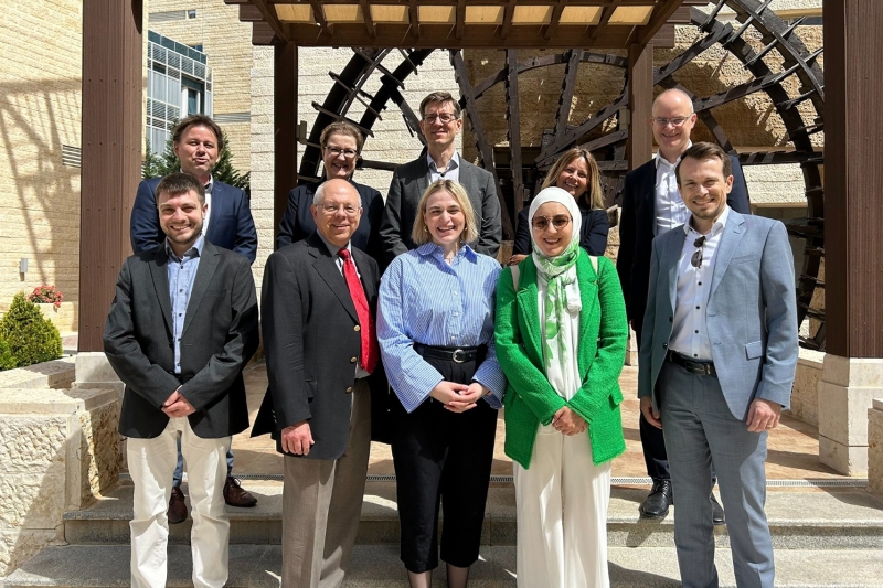 شهد يوم 21 أبريل أول زيارة رسمية لرئيس جامعة فورتسبورغ شفايفورت الجديد ، الأستاذ الدكتور جون ماير إلى الأردن وإلى الجامعة الألمانية الأردنية الشريكة الاستراتيجية لجامعة فورتسبورغ شفايفورت. رافق الرئيس نائب رئيس جامعة فورتسبورغ شفايفورت للشؤون الدولية والأكاديمية ، الأستاذ الدكتور أخيم فورستر ، الأستاذ الدكتور رالف روسكوبف ، منسق الدراسة في جامعة فورتسبورغ شفايفورت لبرنامج العمل الاجتماعي المستضاف ، الأستاذ الدكتور فينفريد فيلكة ، منسق الدراسة في جامعة فورتسبورغ شفايفورت للبرنامج المستضاف هندسة تكنولوجيا الهيدروجين بالإضافة إلى أعضاء المكتب الدولي وأعضاء Campus GATE  في جامعة فورتسبورغ شفايفورت.