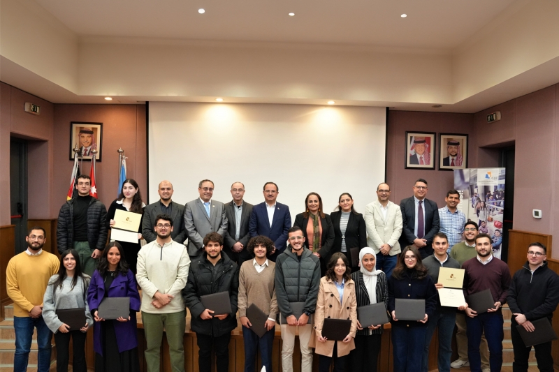 احتفلت الجامعة الألمانية الأردنية بتكريم عدد من طلبتها وأعضاء الهيئة التدريسية الذين فازوا في المسابقات المحلية والإقليمية والدولية. وأكد رئيس الجامعة، الأستاذ الدكتور علاء الدين الحلحولي، خلال الحفل على أهمية المشاركة في المسابقات كوسيلة لتطوير مهارات الطلاب وتعزيز الابتكار والإبداع لديهم، مشيرًا إلى أنها تسهم في تنمية مهارات العمل الجماعي والتفكير النقدي، مما يعزز قدرة الطلاب على مواجهة تحديات المستقبل.