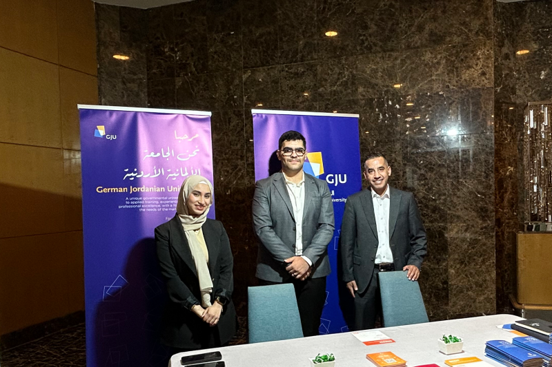 وقدّمت الجامعة الألمانية الأردنية من خلال جناحها الخاص تعريفًا شاملًا ببرامجها الأكاديمية وتخصصاتها المتميزة، إلى جانب تسليط الضوء على مميزات نظامها التعليمي القائم على الدمج بين الجانبين النظري والتطبيقي، والتعريف بـ"سنة ألمانيا" التي توفر فرصًا للتدريب العملي والتبادل الأكاديمي مع شركات ومؤسسات رائدة في ألمانيا.