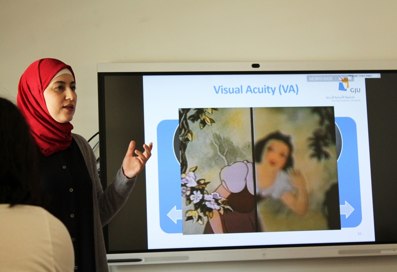 عقد مركز التأهيل البصري ورشتي عمل لطلاب السنة الخامسة من كلية هندسة العمارة والبيئة المبنية في الجامعة الألمانية الأردنية في حرم الجامعة جبل عمّان، قدمتها المحاضِرة وأخصائية التأهيل البصري في المركز ميساء مسعود.