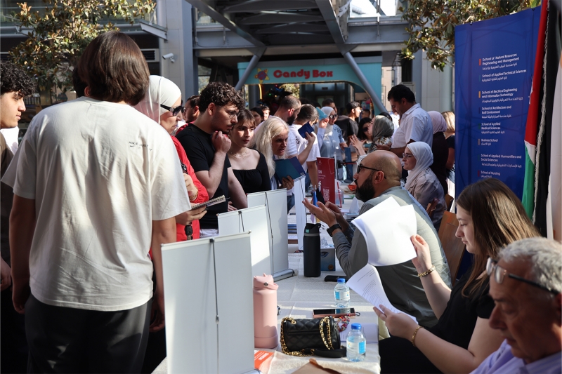 نظّمت الجامعة الألمانية الأردنية، بالتعاون مع شركة العبدلي – بوليفارد، يوم السبت، 9 آب 2025، يومًا مفتوحًا لطلبة الثانوية العامة والبرامج الدولية والراغبين في التعرف على الجامعة وأولياء أمورهم، وذلك في بوليفارد – العبدلي.