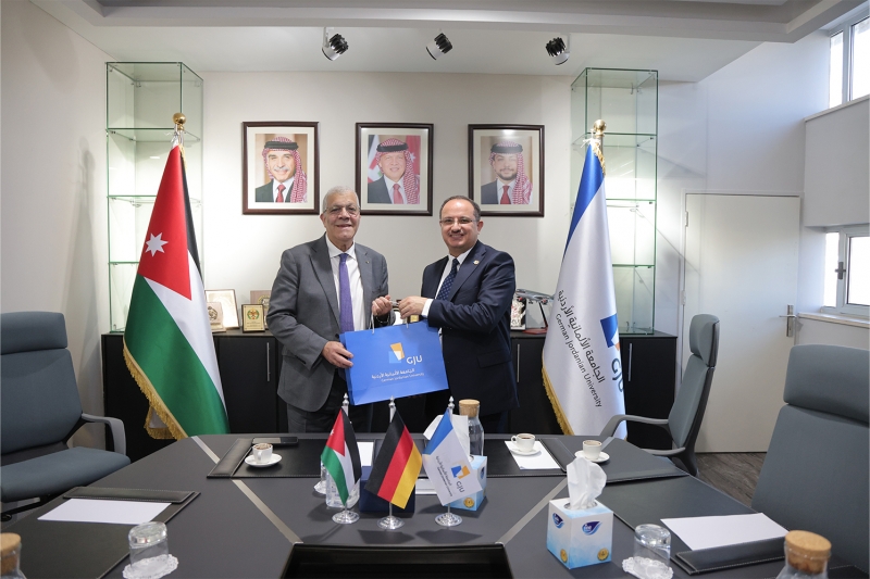 من جانبه، أشاد سعادة السفير بحة بالمستوى الأكاديمي المتقدم للجامعة الألمانية الأردنية وبيئتها التعليمية الحديثة، معربًا عن اهتمامه بتوسيع آفاق التعاون الأكاديمي والبحثي بين الجامعات الجزائرية والجامعة الألمانية الأردنية، بما يخدم مصلحة الطلبة والمؤسسات التعليمية في كلا البلدين.