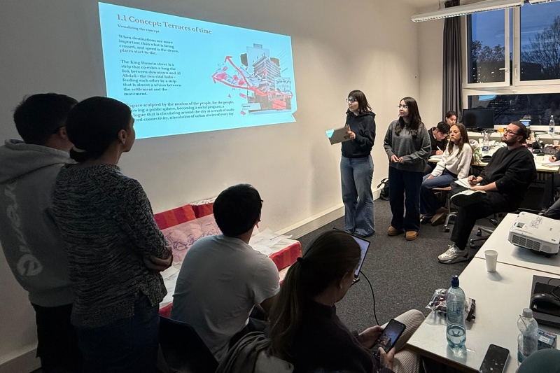 واستكمل الوفد مشاركته من خلال عمل استوديو مكثف في حرم جامعة RWTH آخن في شارع شينكل، حيث واصلت الفرق الطلابية المختلطة تطوير المشاريع التي بدأ العمل عليها خلال ورشة عمّان، وصولًا إلى إعداد مخططات هيكلية استراتيجية عكست نتائج التحليل والرؤى التخطيطية، واختُتمت بعروض تقديمية جماعية. وانطلاقًا من نجاح هذا التبادل الأكاديمي، يتجه التعاون ضمن برنامج «تعزيز» نحو التوسع ليشمل شراكات بحثية مستقبلية، وندوات أكاديمية مشتركة، وفرصًا أوسع لتبادل الطلبة بين الجامعة الألمانية الأردنية وجامعة RWTH آخن. ويُذكر أن المشروع يحظى بدعم الهيئة الألمانية للتبادل الأكاديمي (DAAD)، فيما أعربت الجامعة الألمانية الأردنية عن تقديرها لجامعة RWTH آخن على حسن الاستضافة وتوفير بيئة أكاديمية متميزة أسهمت في إثراء التجربة التعليمية والثقافية للطلبة المشاركين.