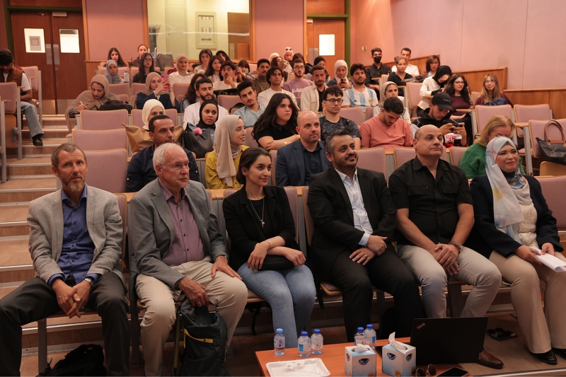 واستعرضت الدكتورة بسمة الطاهر خطط الدراسة ونظام الإرشاد الأكاديمي ومتطلبات مشروع التخرج، مشجعة الطلبة على تحمل المسؤولية في مسيرتهم الجامعية. كما تحدث السيد أسامة سلايطة عن التدريب الميداني والدراسات المزدوجة، وقدم الدكتور أوليفر ريتر منح الترجمة المتاحة.