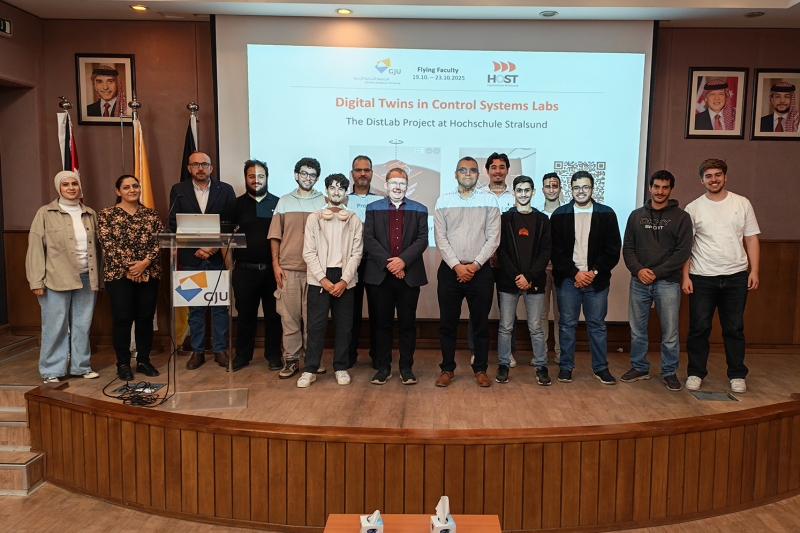 استضافت كلية العلوم التقنية التطبيقية (SATS) في الجامعة الألمانية الأردنية الأسبوع الماضي البروفيسور يان-كريستيان كور، أحد أعضاء هيئة التدريس الزائرين ضمن برنامج "Flying Faculty" من جامعة شترالزوند للعلوم التطبيقية (HOST). وخلال زيارته، قدّم البروفيسور كور مجموعة من المحاضرات والندوات المتخصصة التي عكست خبرته الأكاديمية الواسعة وصلاته القوية بقطاع الصناعة.