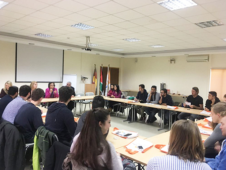 نظم المكتب الدولي في الجامعة الألمانية الأردنية يوم الأحد 18 فبراير 2018 لقاء ترحيبيًا لـ 32 طالب تبادل جديد انضموا من 21 جامعة ألمانية وليتوانيا وبلجيكية ، للدراسة لمدة فصل دراسي واحد في الجامعة الألمانية الأردنية.