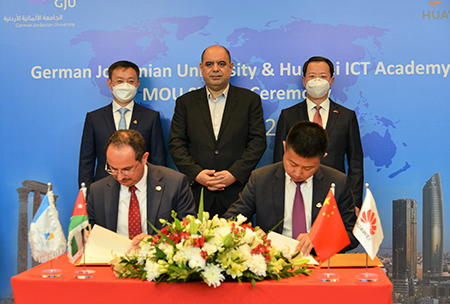 وقّعت الجامعة الألمانيّة الأردنيّة وشركة هواوي مذكّرة تفاهم؛ لتعزيز التّعاون المشترك في مجال تكنولوجيا المعلومات والاتّصالات، بحضور وزير الاقتصاد الرَّقْميّ والرّيادة أحمد الهناندة، وسفير جمهوريّة الصّين الشّعبيّة في الأردنّ تشن تشوان دونغ، ورئيس هواوي في الشّرق الأوسط ستيفن يو، والرّئيس التّنفيذيّ لشركة هواوي الأردن إيثان وانغ.