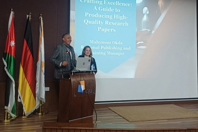 وتقدّمت مكتبة الجامعة الألمانية الأردنية بخالص الشكر والتقدير للناشر Emerald Publishing، ممثلًا بالسيدة أريج البرغوثي، وللسيدة مهينور عكدة، على هذا التعاون البنّاء الذي يصب في مصلحة دعم الباحثين وتطوير قدراتهم البحثية.