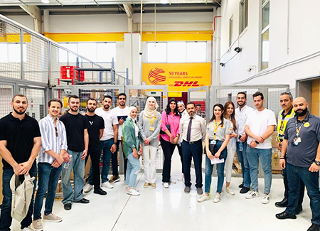 زار وفد طلابي من الجامعة الألمانية الأردنية مستودعات شركة DHL للشحن السريع في مطار الملكة علياء الدولي، حيث تأتي هذه الزيارة الميدانية ضمن مساق إدارة المستودعات في كلية العلوم الإدارية واللوجستية الذي يدرسه عضو هيئة التدريس في الكلية الدكتور حسان يونس.