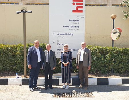 زار وفد من الجامعة الألمانية الأردنية مؤلف من  الأستاذ الدكتور منيب الساكت من كلية العلوم الطبية التطبيقية والدكتور إبراهيم الرفاعي مستشار الدراسات الثنائية في الجامعة، يرافقهم الدكتور وولفجانج فروهبرج، رئيس قسم التعليم العالي في الوكالة الألمانية للتعاون الدولي شركة أدوية الحكمة بهدف الالتقاء مع طلبة قسم الهندسة الصيدلانية والكيميائية المتدربين في الشركة.