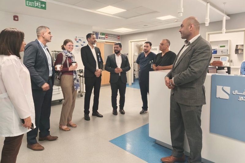 وضمّ الوفد الدكتورة جوديث أَنْكه، الأستاذ الزائر من جامعة هانوفر في ألمانيا، إلى جانب نائب عميد كلية التمريض الدكتور محمد الزعاترة، ورئيس قسم علوم التمريض الدكتور محمد السعدي. وكان في استقبال الوفد عضو مجلس الإدارة والمدير المالي للمستشفى السيدة هبة السعودي، والمدير الطبي الدكتور محمد كامله، ورئيس قسم التعليم والتدريب المستمر السيد حسام الصعيدي.
