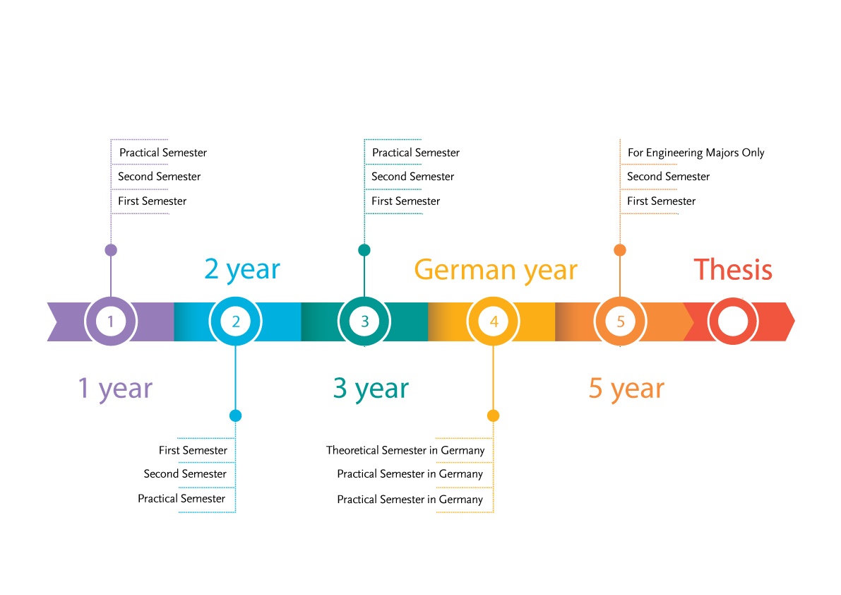 Due to the future strategy of GJU it is planned to enroll Dual Studies Tracks to all Bachelor and Master Programs. Currently we have Dual Studies Tracks in more than 12 majors: