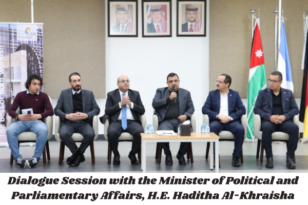 Additionally, the university hosted a Dialogue Session with the Minister of Political and Parliamentary Affairs, H.E. Haditha Al-Khraisha, who emphasized the supportive legislative environment for youth and women’s engagement in political and party life. He noted that the current political modernization offers unprecedented opportunities for youth to actively participate in shaping the future.
