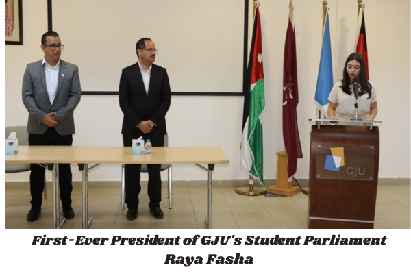 On August 4, 2024, student Raya Fasha was elected as the first-ever President of GJU's Student Parliament during the executive board elections, which followed the official oath ceremony before the University President.