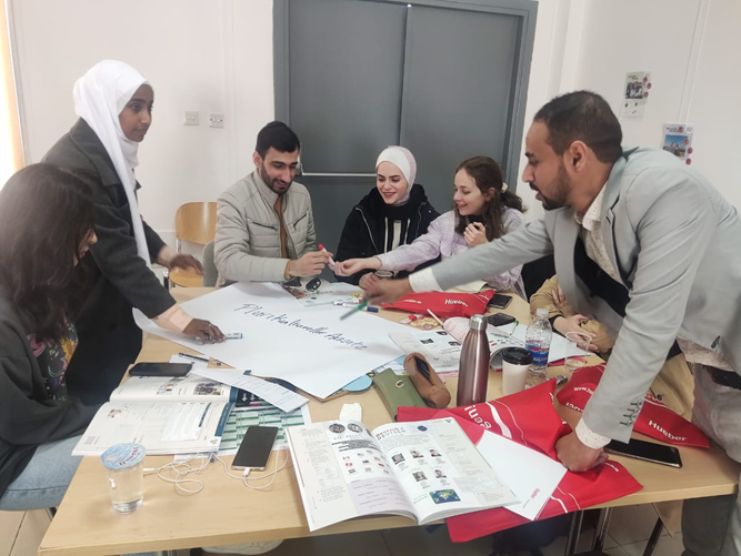On February 23, 2023, Hueber-Verlag organized a training event for the nearly 70 German as a Foreign Language lecturers of the German Language Center. The occasion was the changeover of the textbook "Menschen" used at the GLC to its successor "Momente”. Sally Bondok, a trainer from Hueber-Verlag, demonstrated the new components of the textbook, focusing in particular on the interactive teaching and learning possibilities of the new digital version of the textbook.