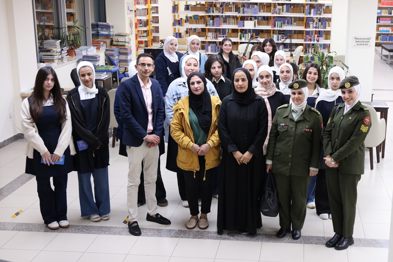 A delegation of female students from “Fatima Al-Zahra Secondary School for Girls”, affiliated with the Directorate of Education and Military Culture in the Jordanian Armed Forces – Arab Army, visited the German Jordanian University (GJU) in an introductory visit aimed at familiarizing them with the academic environment and the academic programs offered by the university, as well as enhancing their awareness of future educational choices.