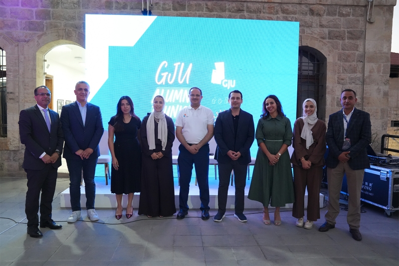 The event included a variety of interactive activities, most notably a presentation by GJU’s Innovation Club and a segment titled "Spotlight on Distinguished Alumni," featuring three outstanding graduates: Mohammad Abu Hamdeh, Mohammad Abu Hanieh, and Dara Al-Zagha. This was followed by a panel discussion entitled "Entrepreneurship After Graduation," where five alumni shared inspiring success stories from various fields: Waleed Al-Saleh, Moath Fauri, Malak Akiely, Alaa Farraj, and Farah Sharaf. The session was moderated by alumna Rand Al-Qatawneh.
