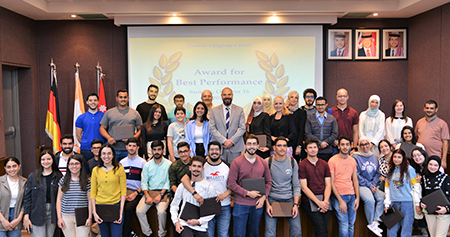 During the “Best Performers Event” held on October 16 by GJU's German Language Center (GLC) at the German Jordanian University (GJU), the best learners of the German language in the 2nd semester of 2021/2022 were awarded with a certificate of excellence, in both B1 and B2 track.
