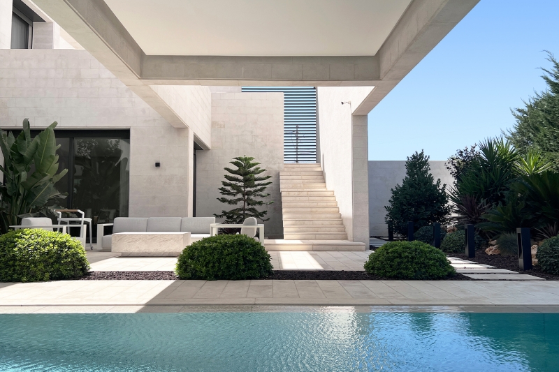 The project’s name, “Silent Walls House,” derives from the concept of designing a home without exterior windows, directing the building instead towards diverse interior courtyards to maximize privacy in a contemporary style. The project’s design coincided with the COVID-19 pandemic, which highlighted the importance of gardens and outdoor spaces in homes, resulting in lively, protected, and tranquil courtyard environments, separated from the outside world.
