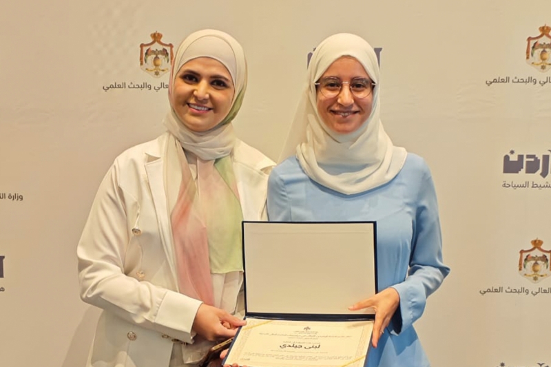 The German Jordanian University (GJU) Tunisian graduate, Lobna Jlidi, who earned her Master’s degree in German as a Foreign Language, was honored during a ceremony organized by the Ministry of Higher Education and Scientific Research in cooperation with the Jordan Tourism Board to recognize the top foreign graduates of Jordanian universities for the academic year 2024–2025.