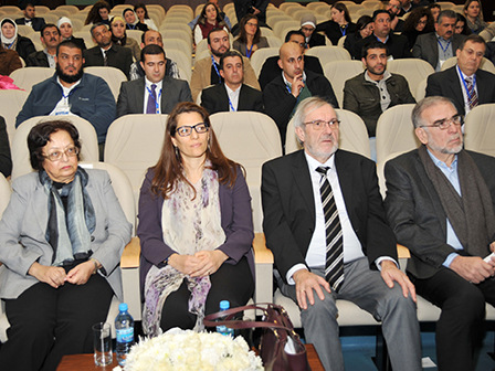 Professor Manar Fayyad gladly received H.R.H Princess Basma and welcomed all the guests who came to Jordan and GJU to participate in the closing conference of the Medscapes Project, saying that it is a notable project of its content, time and place.