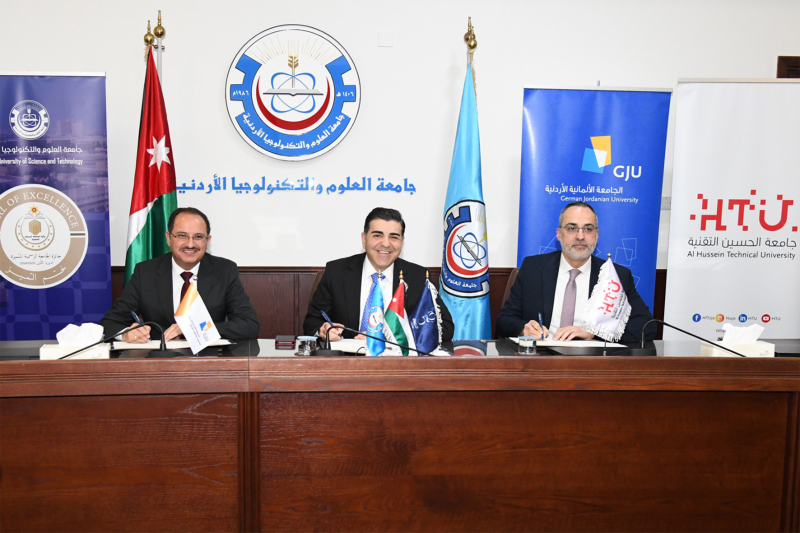 Nov, 25 – Jordan University of Science and Technology, German Jordanian University, and Al Hussein Technical University have signed joint memoranda of understanding aimed at enhancing research and teaching collaboration between the three universities.