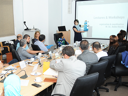The President of GJU Professor. Manar Fayyad met with the partners and highlighted the most distinguished features at GJU, such as the German year where all students have to leave to Germany for one year for study and get an internship in one of Germany’s industries and businesses.