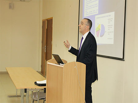 At the end of the lecture which was attended by Dr. Loay Salhieh the Dean of the School of Management and Logistic Sciences and a presenter from Jordan Traffic Institute, a discussion was conducted where the students asked questions about the procedures of enrollment and the linkage to their specialties.