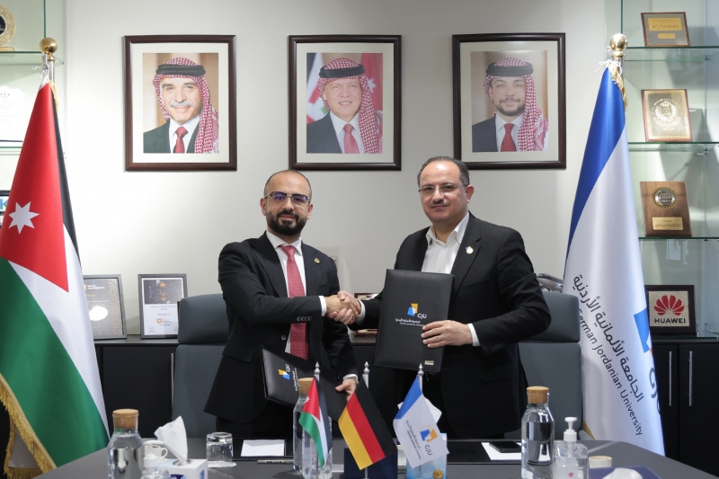 The German Jordanian University (GJU) and the Arab American University in Palestine have signed an academic and research cooperation agreement aimed at developing joint scientific research and establishing sustainable frameworks for academic and training collaboration between the two institutions. This step comes in line with the vision of both universities to strengthen academic partnerships at the regional and international levels.