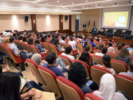 Prof. Manar Fayyad, Vice President of GJU, welcomed all the guests and students, and urged outgoing students to explore new opportunities and to benefit from the new environment during their stay in Germany. She also pointed out that students should respect others cultures as they already represent their country and their culture to others.