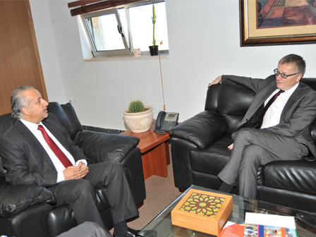Mr. Stephan Steinlein, the State Secretary of the Federal Foreign Office-Germany visited the German Jordanian University in the presence of his excellency Mr. Ralph Tarraf, the German Ambassador, on Sunday 18 May 2014. The visit aimed at reconnoitering the GJU establishment, programs, achievements, and future plans.