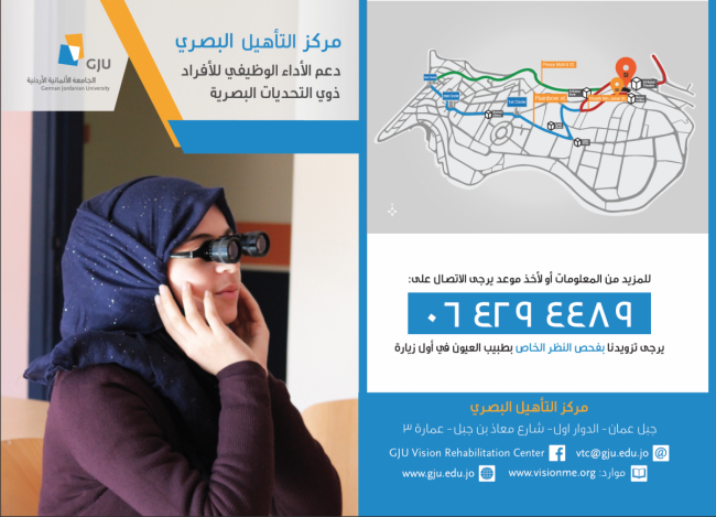 تشمل خِدْمات التّأهيل البصريّ أيضاً التّدخُّل المبكر للأطفال ذوي الإعاقة البصريّة، وتقديم نصائحَ وتدريبٍ لأولياء أمورهم، والتّدريب على التّوجُّه والتَّنقُّل، ومهارات الحياة اليّوميّة للبالغين ذوي الإعاقة البصريّة. يستفيدُ كلّ عامٍ أكثرُ من (150) شخصاً من هذه  الخِدْمات.