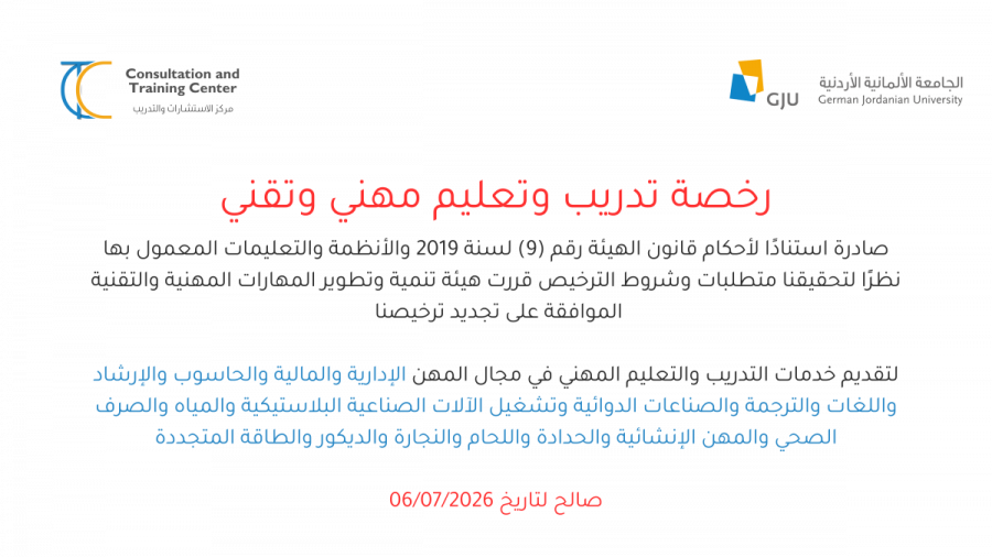 © 2014 - 2026، الجامعة الالمانية الاردنية، جميع الحقوق محفوظة.