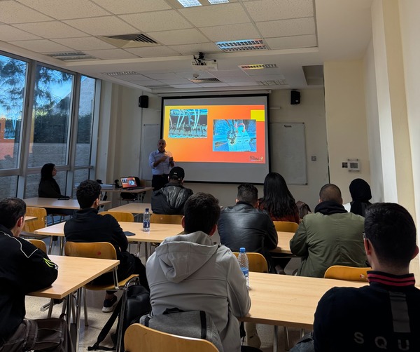 وبين المهندس داية للطلبة أهمية التصوير الحراري بالأشعة تحت الحمراء في المحافظة على أنظمة الطاقة الشمسية الكهروضوئية وكيفية تجنب فترات التوقف التشغيلية المكلفة، بالإضافة إلى آخر التطورات في تكنولوجيا الطاقة المتجددة من خلال عرض للكاميرات المستخدمة في المجال واستعراض بعض الأمثلة العملية من الميدان.