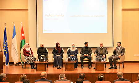 من جهتها أكدت سفيرة الاتحاد الأوروبي لدى الأردن ماريا هادجيثيو دوسيو على دور برنامج التعليم السوري الأردني في توفير منح دراسية للتعليم العالي ودورات تدريبية مهنية داخل الجامعات الأردنية للاجئين السوريون والشباب الأردنيون الأقل حظًا منذ عام 2015 عن الاتحاد الأوروبي.