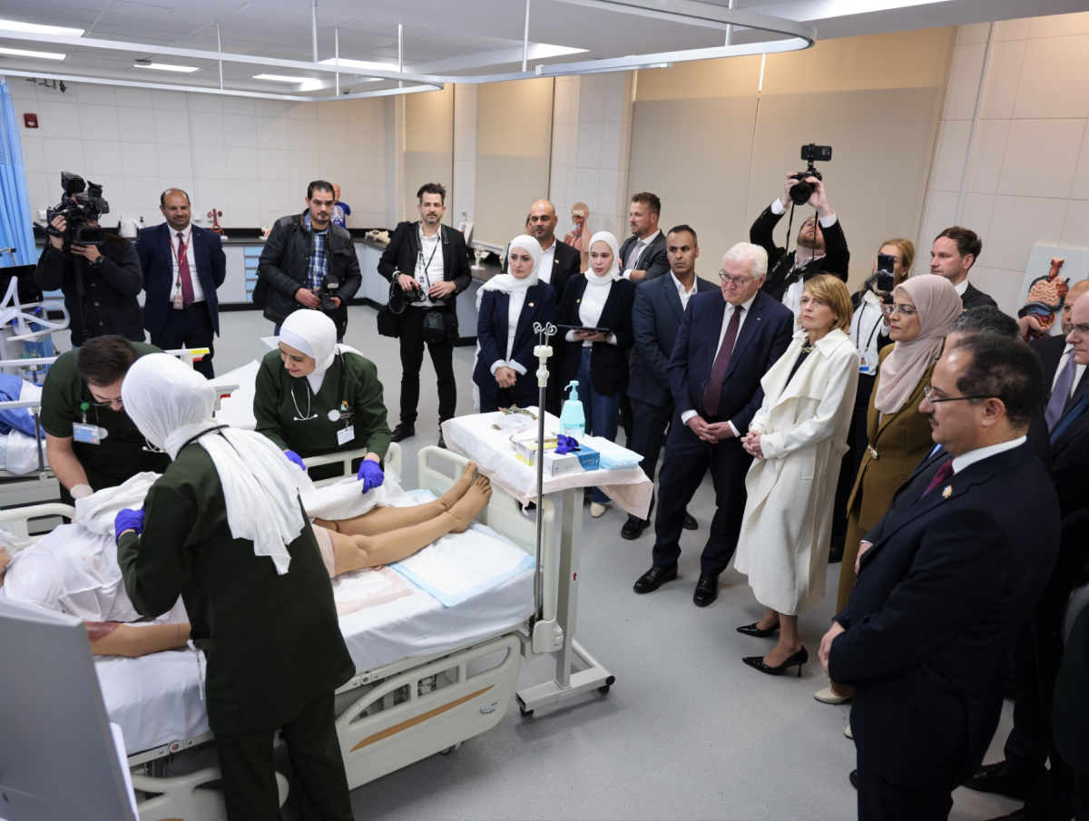 كما زار كلية التمريض، التي أسستها الجامعة لتلبية الطلب المتزايد على الكوادر التمريضية المؤهلة في الأردن وألمانيا، واطّلع على البرامج الأكاديمية والتدريبية، وشاهد تجارب محاكاة لتدريب الطلبة على التعامل مع المرضى وفق أعلى المعايير المهنية والسريرية.
