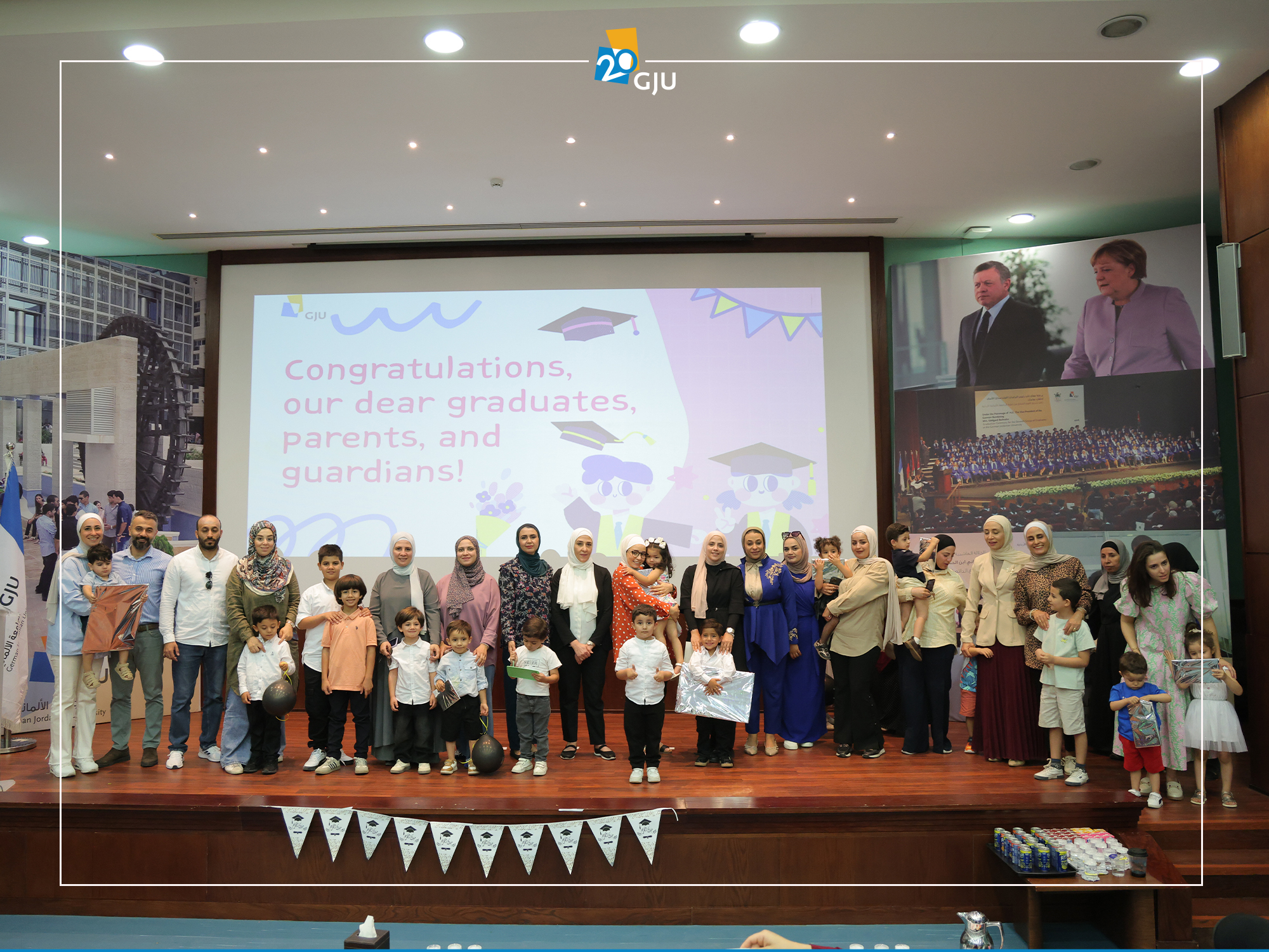 احتفلت حضانة الجامعة الألمانية الأردنية بتخريج الفوج التاسع من أطفالها للعام الدراسي 2024/2025، وسط أجواء من الفرح والسعادة، وبمشاركة واسعة من ذوي الأطفال وموظفي الجامعة وبحضور أعضاء مجلس حضانة الجامعة.