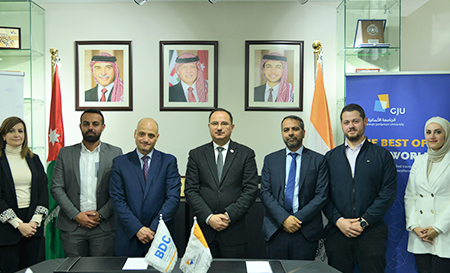 وقعت الجامعة الألمانية الأردنية ومركز تطوير الأعمال BDC   -  مذكرة تفاهم تهدف إلى التعاون في تدريب عدد من الشباب الأردني من أصحاب الأفكار والمشاريع التي تتعلق بريادة الأعمال الخضراء والتعاون في مجال خدمات التوعية والتدريب واحتضان الأعمال الريادية لطلبة وخريجي الجامعة والمجتمع المحلي في محافظة مأدبا للتشغيل والتشغيل الذاتي وربطهم بالشركات الأردنية والألمانية من القطاع الخاص من خلال عمادة الابتكار ونقل التكنولوجيا والريادة.