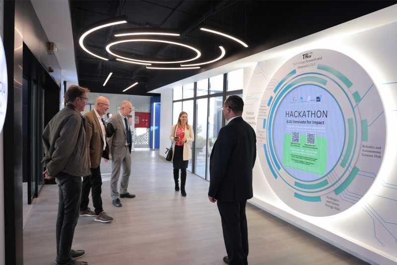 وتضمّن برنامج الزيارة جولة في مجمع البحث والتكنولوجيا والابتكار، اطّلع خلالها رضوان على المختبرات المتقدمة والمشروعات البحثية التي ينفذها الطلبة والباحثون، معربًا عن إعجابه بمستوى التجهيزات والبيئة البحثية، وما تعكسه من توجه الجامعة نحو الابتكار وربط التعليم بسوق العمل.