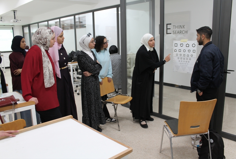 وتخللت الزيارة محاضرات تطبيقية تناولت آليات تقييم الوظائف البصرية، مثل حدة البصر للقريب والبعيد، حساسية التباين، المجال البصري، وحركات عضلات العين، إلى جانب عرض للمعينات البصرية المستخدمة لتحسين الرؤية لدى ضعاف البصر، مثل النظارات المكبرة، والمكبرات اليدوية والإلكترونية، والتيليسكوبات بمختلف أنواعها.