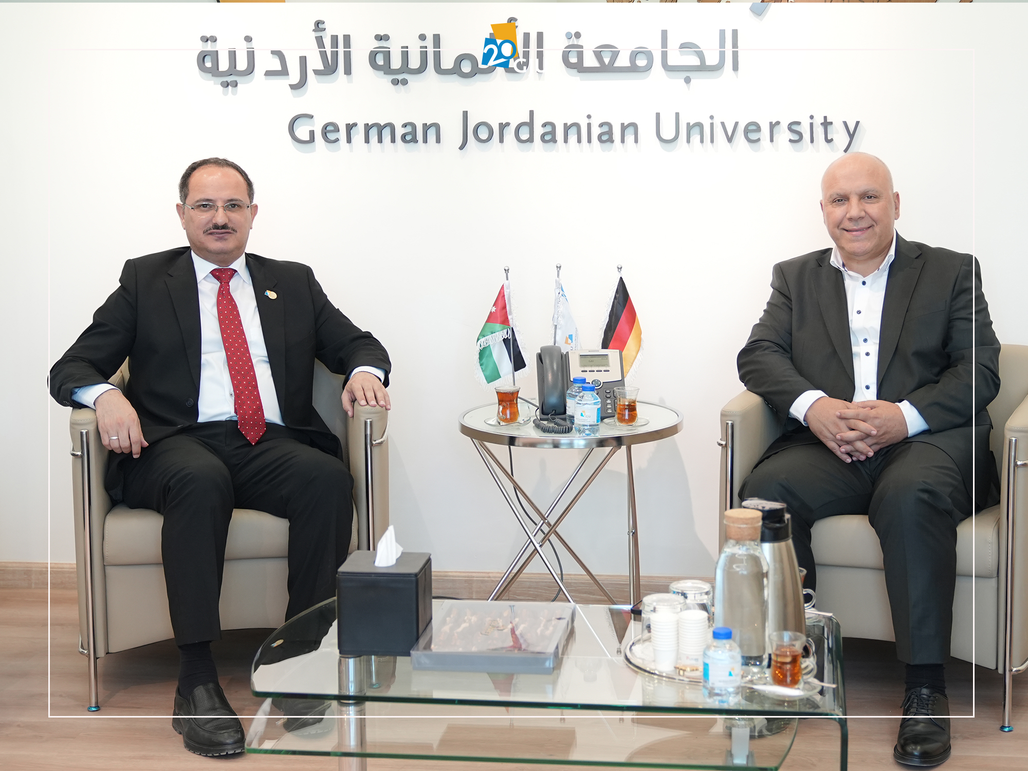 استقبل رئيس الجامعة الألمانية الأردنية، الأستاذ الدكتور علاء الدين الحلحولي، مدير صندوق تشجيع الطاقة المتجددة وترشيد الطاقة، الدكتور رسمي حمزة، والوفد المرافق له، خلال زيارتهم للجامعة، والتي هدفت إلى بحث آفاق التعاون والشراكة بين الجامعة والصندوق.