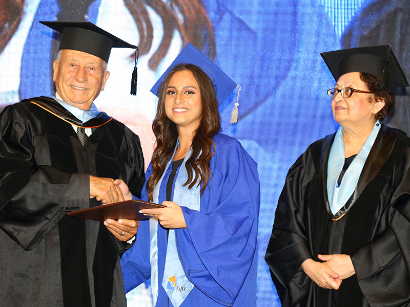 Farah Al-Zubi, Haya Aseer, and Kaled Tafesh delivered the graduates' speech, where they expressed their happiness and excitement, shared their experiences during the years they had spent at GJU, pointing to the role of the University in preparing them at all levels to the next phase in their lives.