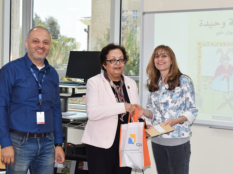 Prof. Manar Fayyad appreciated all the parties who were involved in the event; the Library Team, the Deanship of Student Affairs, GJU's Nursery and students' clubs (Theater and Drama Club, Photography Club, Volunteers Club).