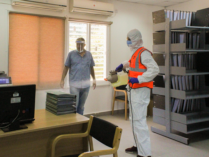 On Wednesday, 30 September 2020, the German Jordanian University (GJU) sterilized its facilities in cooperation with Global Shield Company, specialized in infection prevention and disease control.Abdulazeez Yahya, the CEO of the company and a GJU graduate from the Bachelor and Master program from the School of Management and Logistics Sciences (SMLS) - Logistics Science Department, stated, “It was a great honor to return to the university to offer my company’s services out of loyalty to GJU and the sense of social responsibility”.