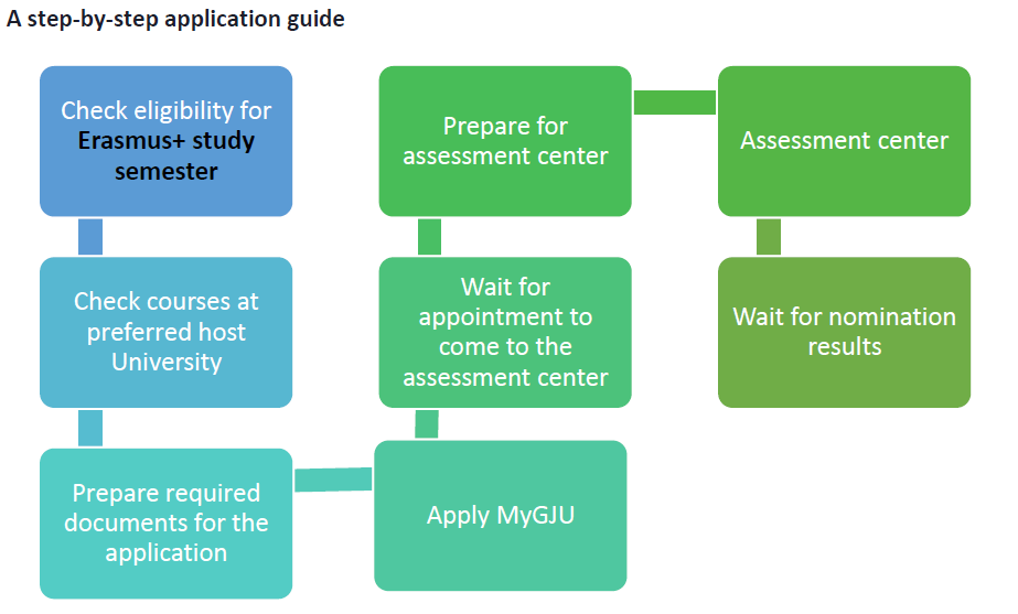 - After the nomination the student has to prepare the Erasmus+ learning agreement, which needs to be approved by either the exchange coordinator or the dean of the GJU school of the student.