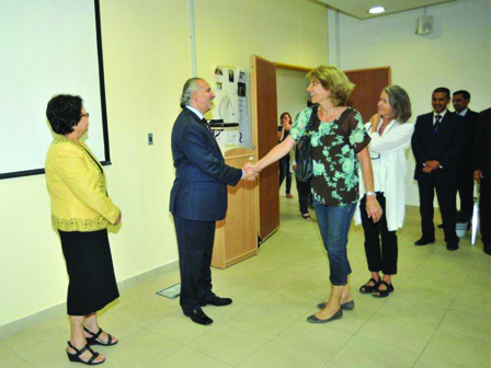Prof. Natheer Abu Obeid, the GJU President, exchanged greetings on the occasion of Eid Al Fitr with the GJU academic and administrative staff on Sunday, 3 August 2014.