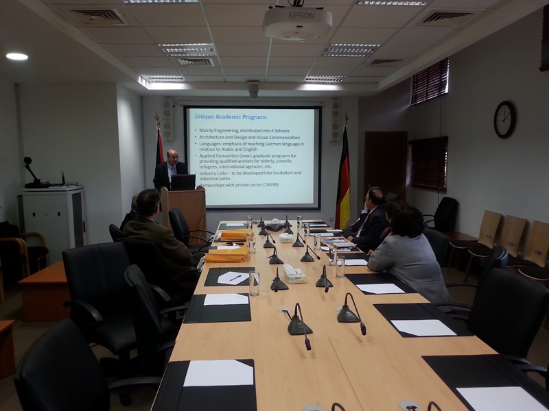 After the Royal Decree that was issued on Tuesday, 25th of November, 2014 appointing the members of the board of the German Jordanian University, the members met with the President Prof. Natheer Abu Obeid, and had an orientation day through the campus.