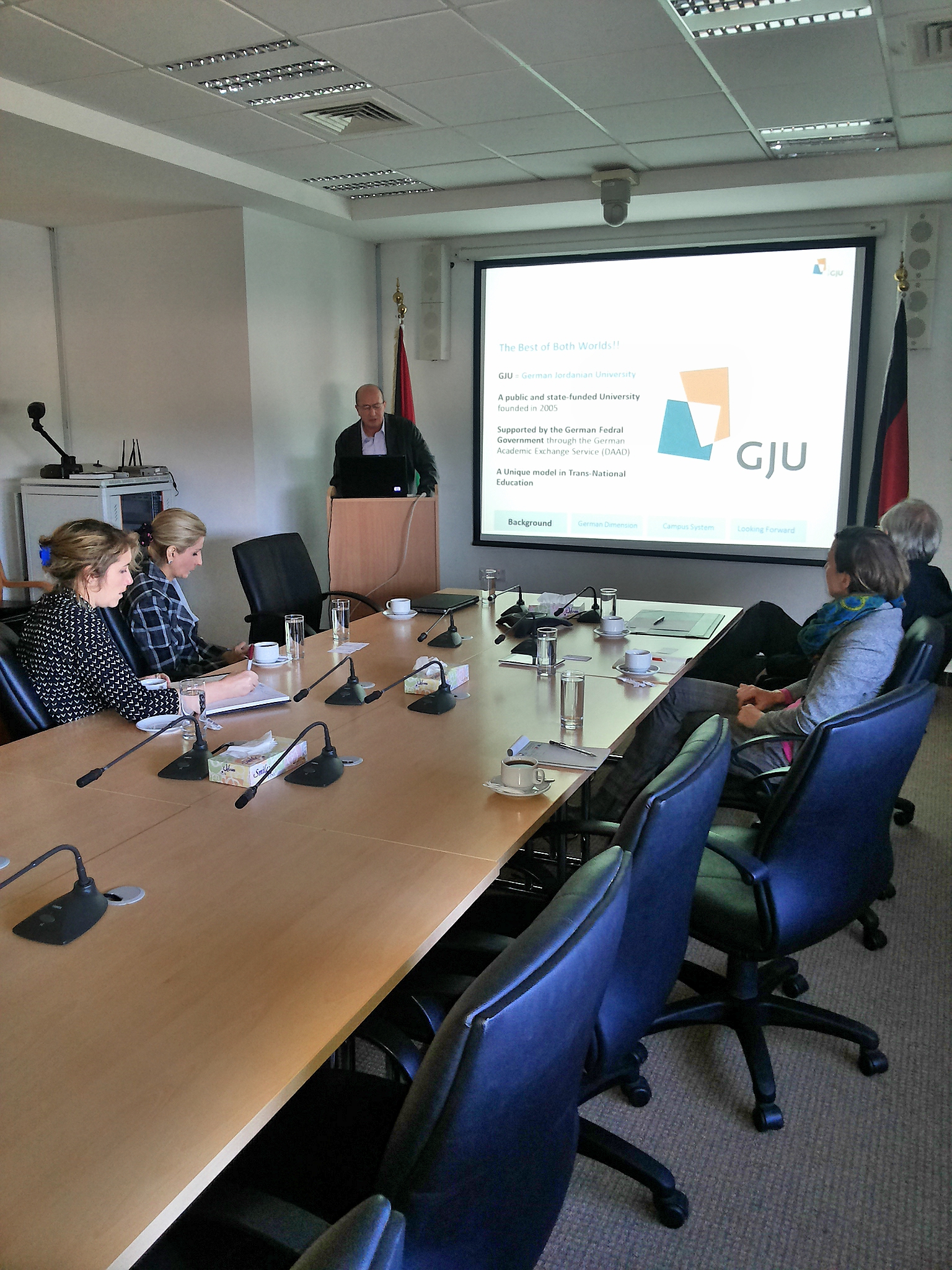 During the meeting Ms. Abuhamida and Ms. Collett addressed many inquiries and questions which were answered by Prof. Anton Mangstl , Vice President for International Affairs and Dr. Dorothea Jecht, Director of International Office who both pointed out to the value and importance of gathering data from practitioners, HE leaders and a range of other sources that can help the British council to support their project with perspectives on the academic, cultural, and skills impacts of transnational education.
