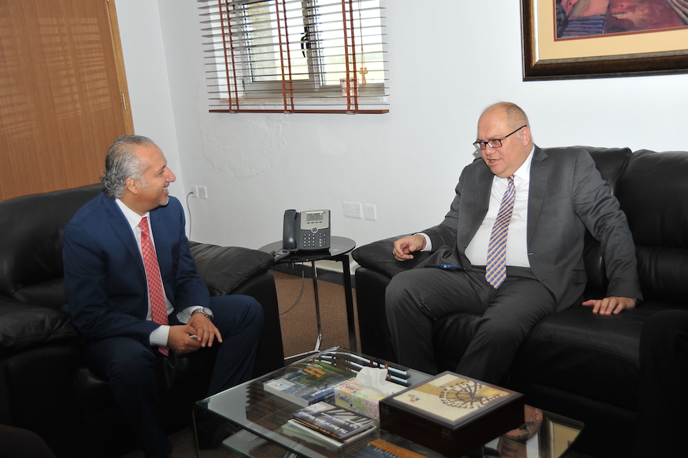 At a meeting with the GJU President Prof. Natheer Abu Obeid, attended by the Vice President Prof. Manar Fayyad, Assistant to the President for Communications and Public Relations Dr. Yasser Rajjal, Director of Study of Natural and Cultural Heritage Center Dr. Nizar Abu Jaber , and Dr. Maram Tawil from the School of Architecture and Built Environment, H.E Eng. Sami Halaseh Minister of Public Works and Housing praised the university scientific level and its great reputation in the region.