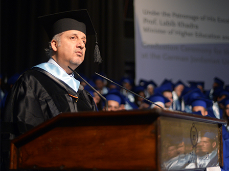 As of today, GJU has more than 4200 students, with more than 400 of them as postgraduate students. These students are enrolled in 17 undergraduate programs and 8 postgraduate programs. Additional programs are to commence in the foreseeable future, based upon need and relevancy to GJU’s mission and vision. Some of these programs are planned to be in collaboration with several German universities. A new important concept that is also being introduced is our “Program for Innovation and Entrepreneurship” (PIE). This program comes as a manifestation of our slogan for the coming decade, which is E for E & E: Education for employment and entrepreneurship. With the collaboration of our great German partners and my qualified and enthusiastic team of Deans and administrative officers, it will be possible to achieve this smoothly.